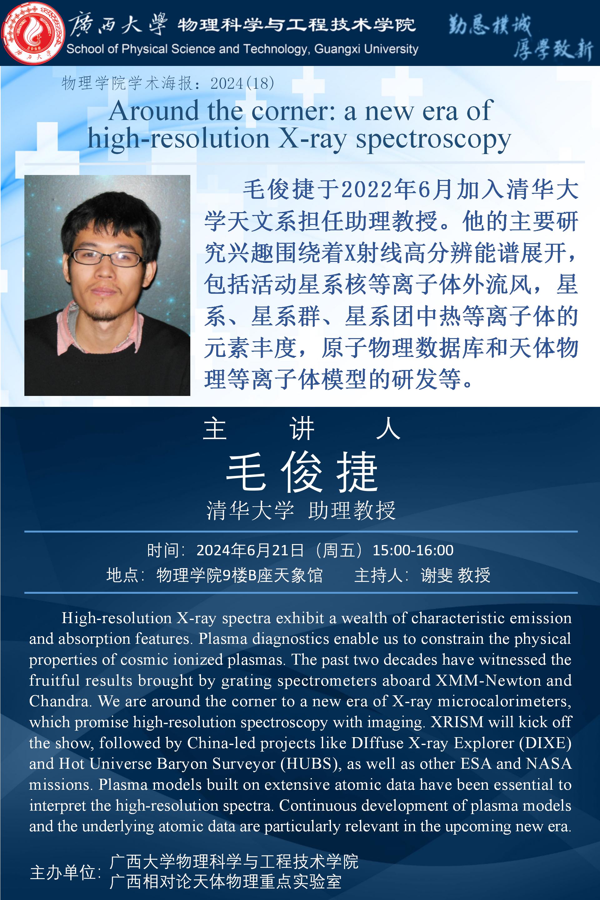 物理学院2024年学术报告之18:Around the corner: a new era of high-resolution X-ray spectroscopy