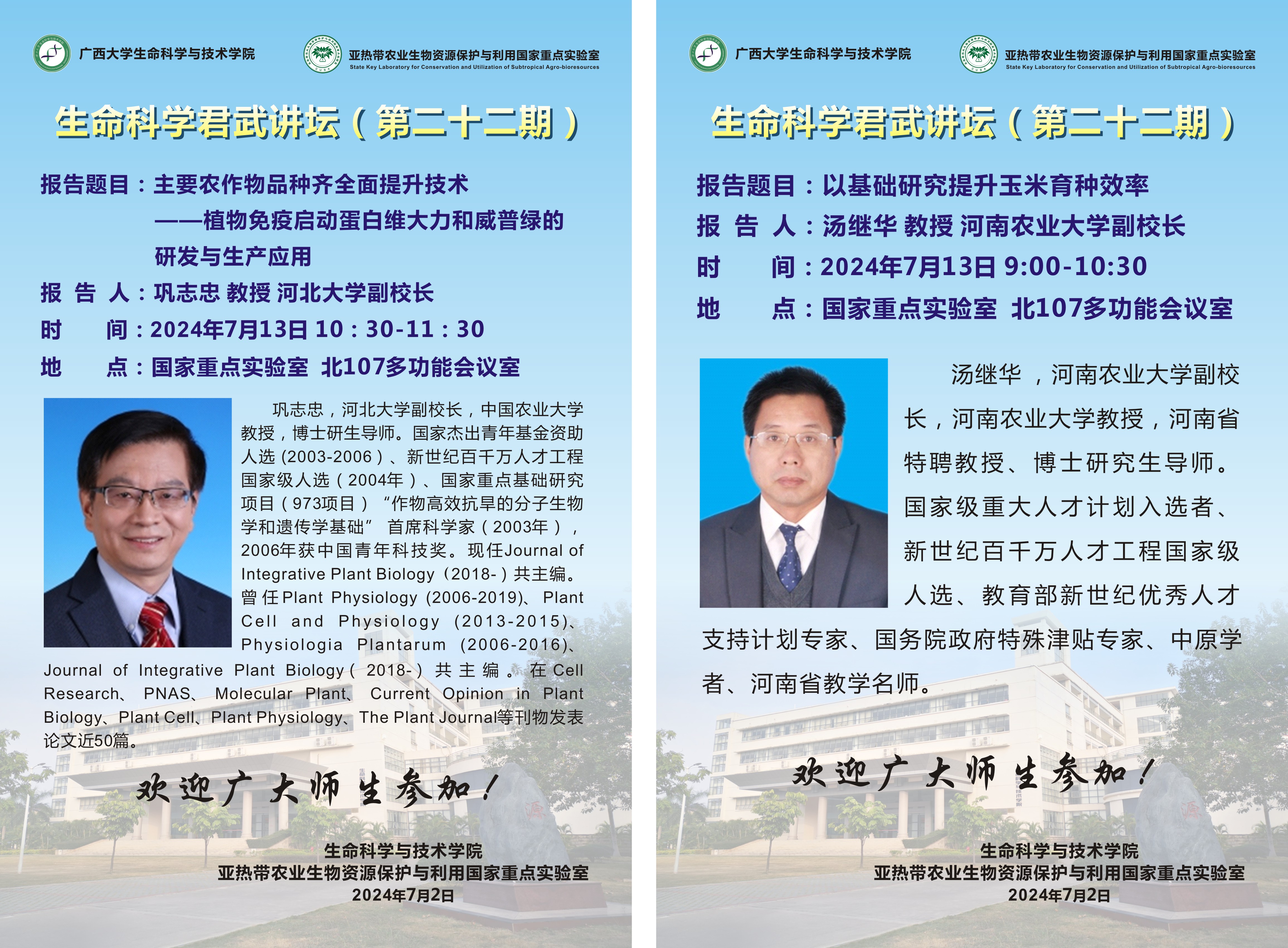 汤继华 教授 河南农业大学副校长、巩志忠 教授 河北大学副校长