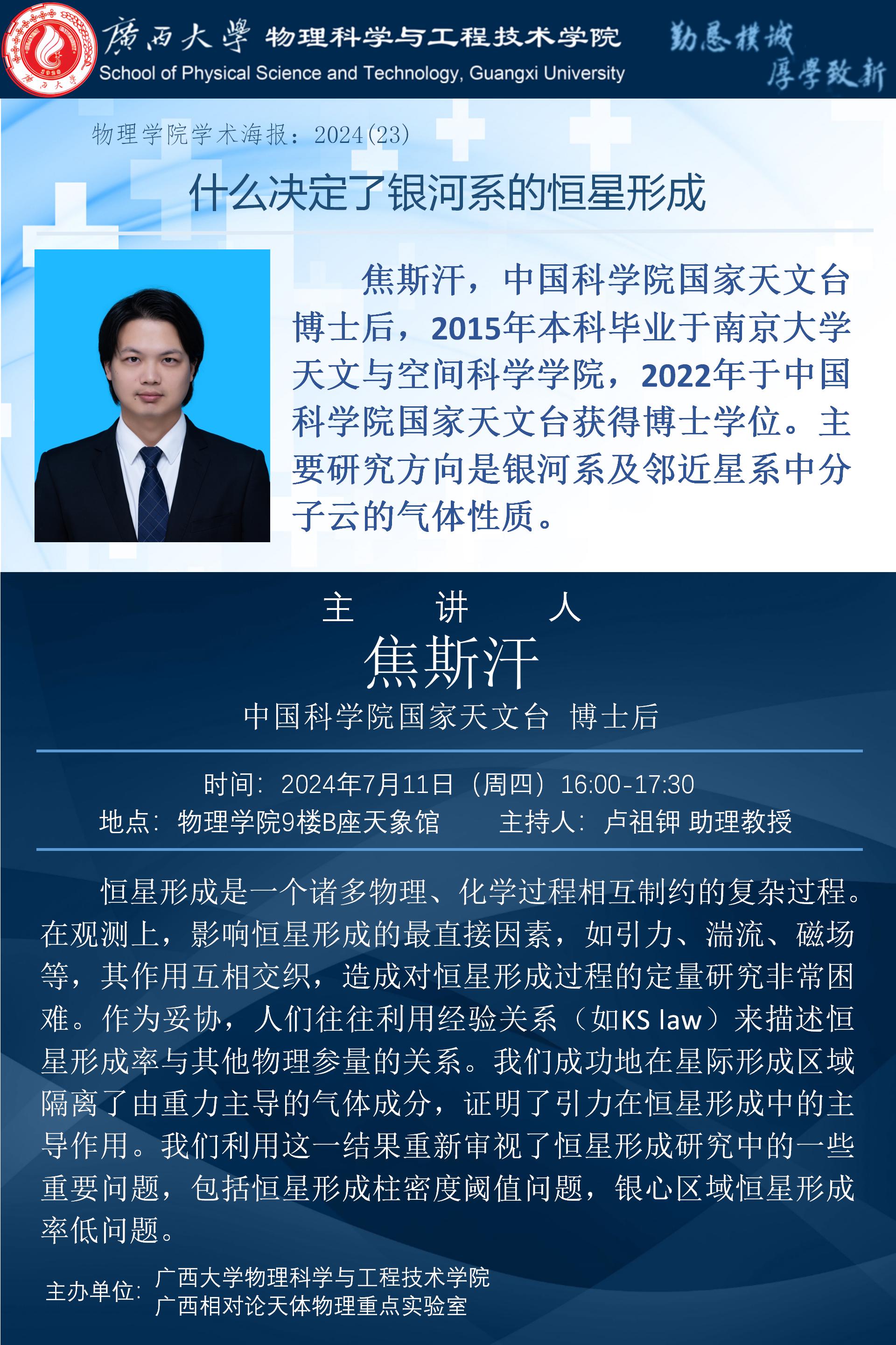 物理学院2024年学术报告之23:什么决定了银河系的恒星形成