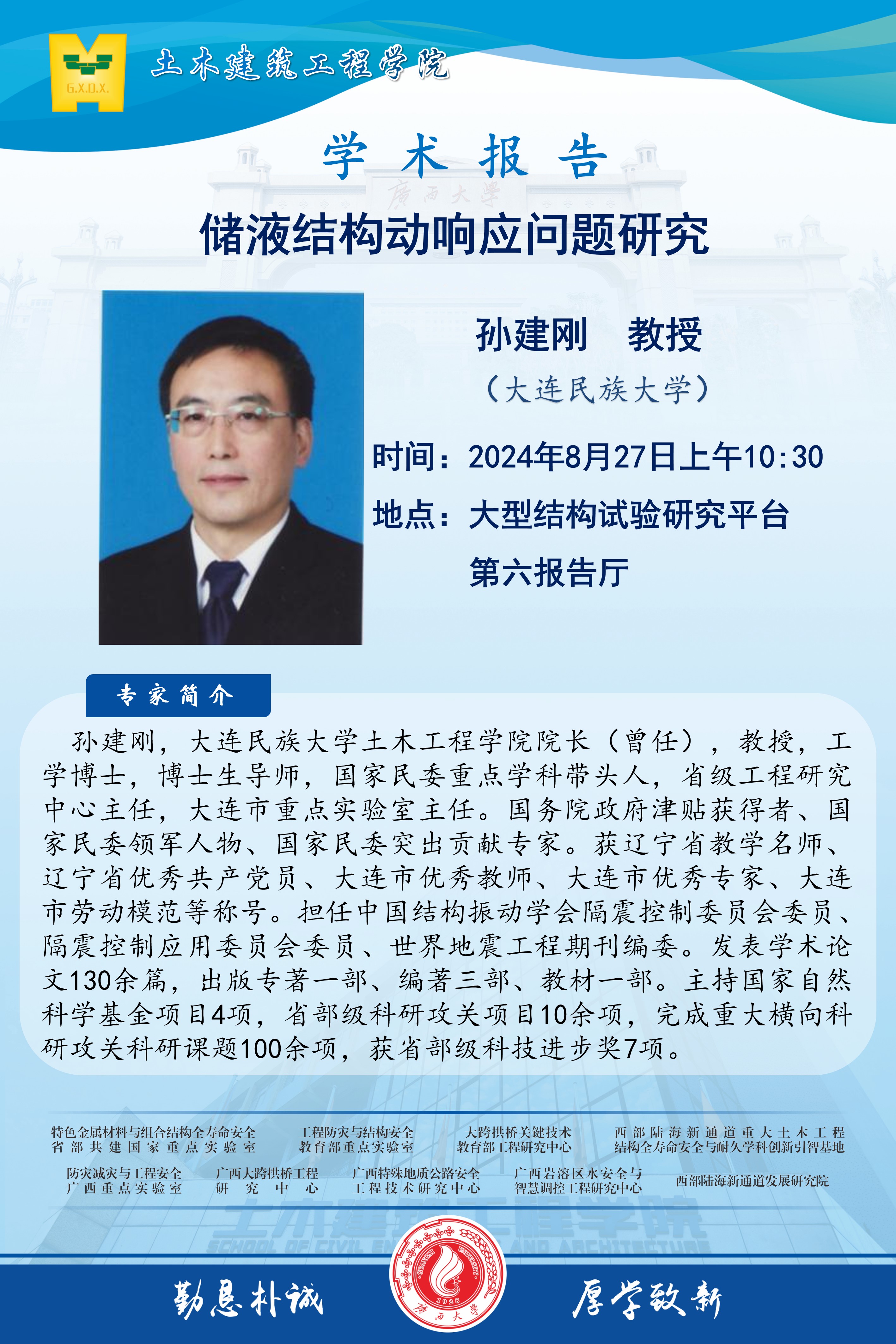 主讲人 孙建刚 教授 (大连民族大学) 地址 大型结构试验研究平台第六报告厅