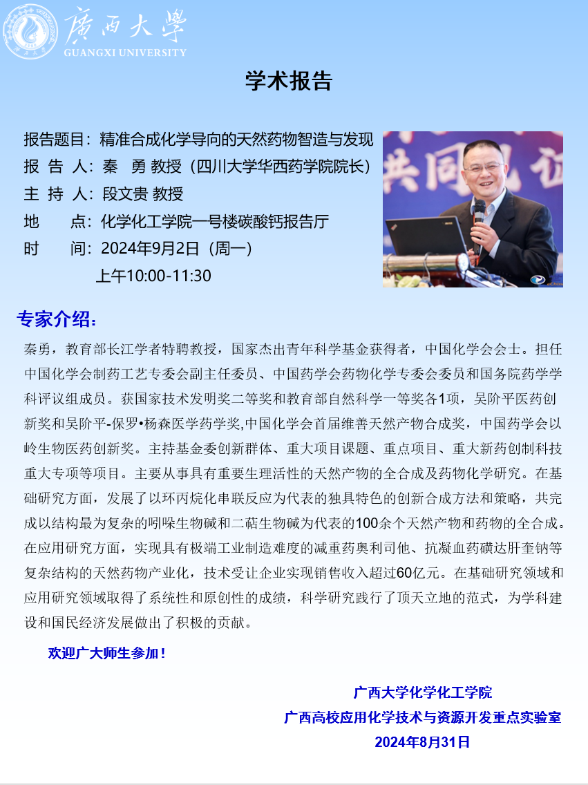 化学化工学院学术报告:精准合成化学导向的天然药物智造与发现